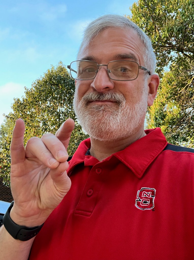 He loves to cheer on the Wolfpack of NC State and the 49ers of UNC Charlotte. His wife Jennifer joined the group a few years ago and he enjoys them being able to perform as part of the same group. He also loves to play board games. Lots and lots of board games.